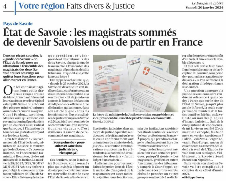 À compter de ce jour, deviennent illégaux toutes taxes, instruments de répression, Urssaf, RSI, péages et impositions diverses de la République française sur le Territoire de la Savoie et du Comté de Nice.