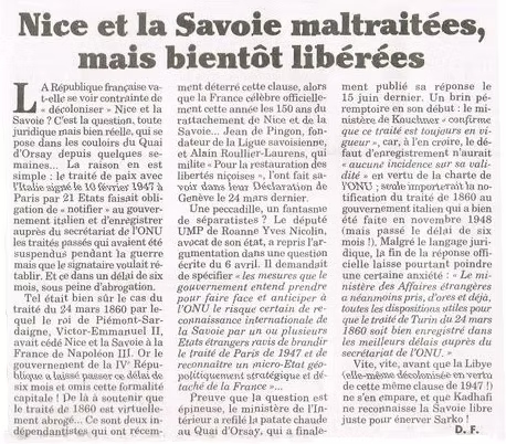 Jean de Pingon s’attaque enfin à de nombreuses idées reçues : La Savoie, par exemple, n’a jamais été italienne, sarde ou piémontaise, elle n’était pas misérable avant d’être annexée, c’est au contraire l’annexion qui l’aurait ruinée ; le petit ramoneur ne serait qu’un mythe !